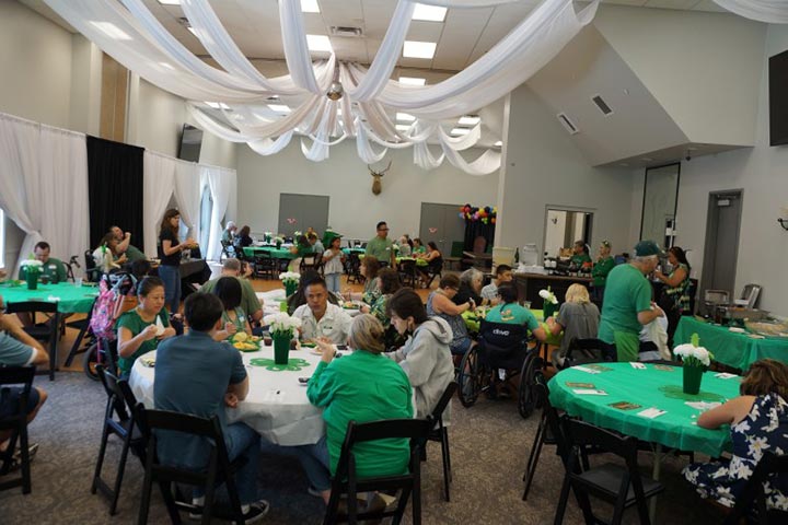 FULLERTON...The Lodge recently held a St. Patrick’s Day party for special needs children, hosting a lunch for the children and their families. Several volunteers assisted in decorating the Lodge with the holiday theme and in the food service. Some volunteers dressed up in holiday specific costumes.