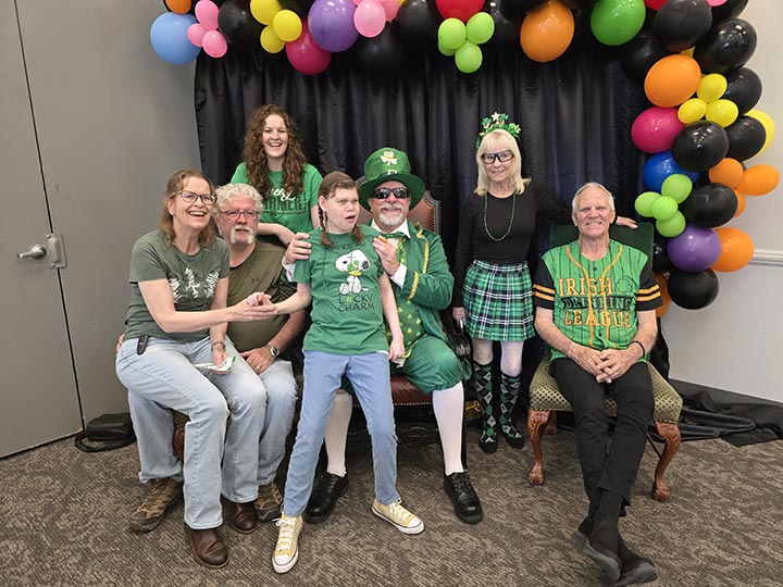 From left to right, Judy Lawson, Mary Rinaldi (Grandmother), Special Child Joseph Gunderson, Darren Baker(Leprechaun), Craig Lawson, and Margie Gunderson (Mother)