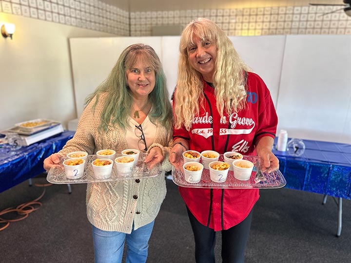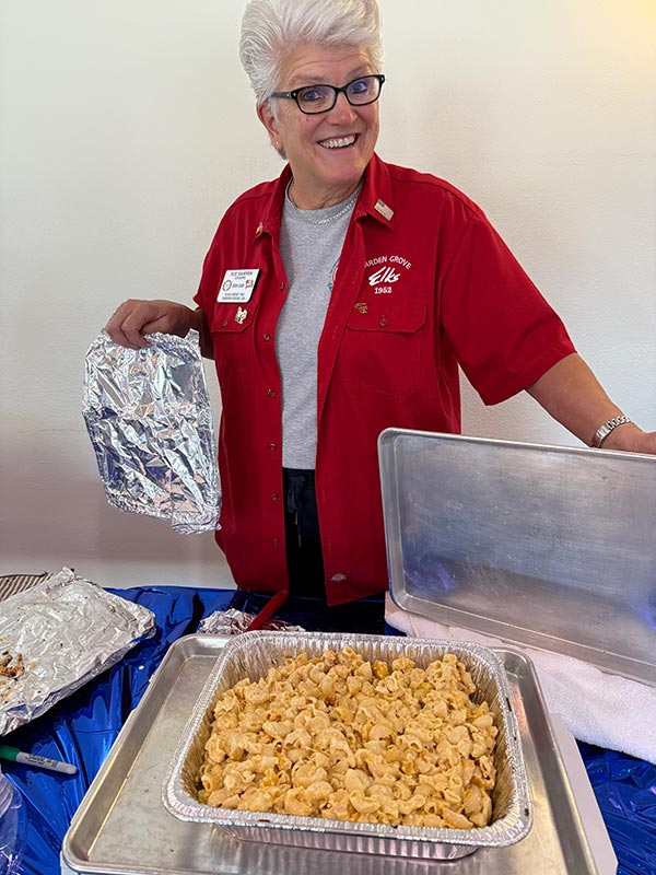 GARDEN GROVE...Inviting all to sample her Mac N Cheese entry is Sue Sawyer, Lodge Esquire and Scholarships Chair.
