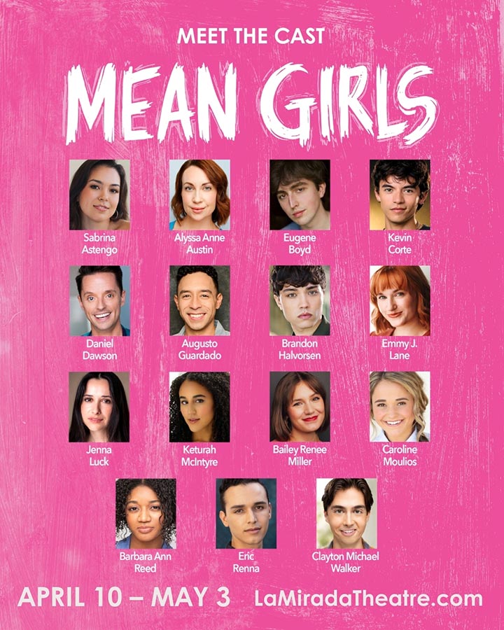 LA MIRADA...LA MIRADA THEATRE FOR THE PERFORMING ARTS & McCOY RIGBY ENTERTAINMENT are thrilled to announce full casting for the Southern California regional theatre premiere of the totally “fetch” queen bee of hilarious modern musicals, MEAN GIRLS, book by Tina Fey, music by Jeff Richmond, lyrics by Nell Benjamin, based on the Paramount Pictures film Mean Girls, musical direction by Anthony Zediker, and direction and choreography by Dana Solimando. MEAN GIRLS will preview on Friday, April 10 at 8 pm and Saturday, April 11 at 2 pm, have its official Press Opening on Saturday, April 11 at 8 pm, and run through Sunday, May 3 at La Mirada Theatre for the Performing Arts, 14900 La Mirada Blvd. in La Mirada.