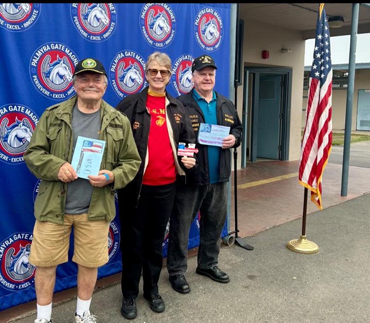 On Friday, Orange Elks veterans greeted the students at Palmyra Elementary School as they arrived. Our veterans told the students about their experiences as veterans, talked about military history and answered any questions the students had.