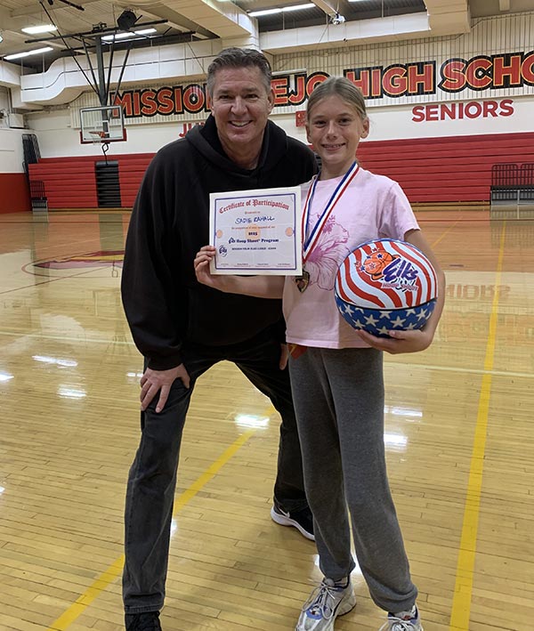 Ed Merk (Hoop Shoot Chairman) and Girls Winner, Sadie Ramallah from Laguna Beach