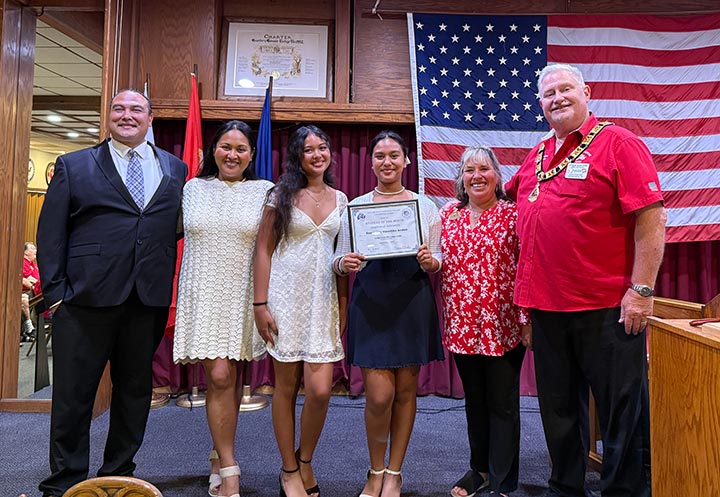 Pictured here is Emma Lee Avalos with her Family, Youth Activities Chairman Karen Garland, and Lodge President Chris Garland