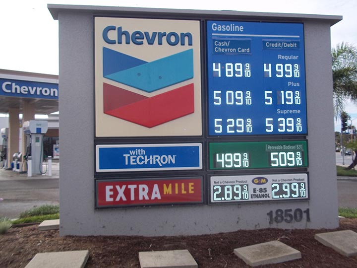 Gas Prices at Chevron Station in Huntington Beach 11/16/2025