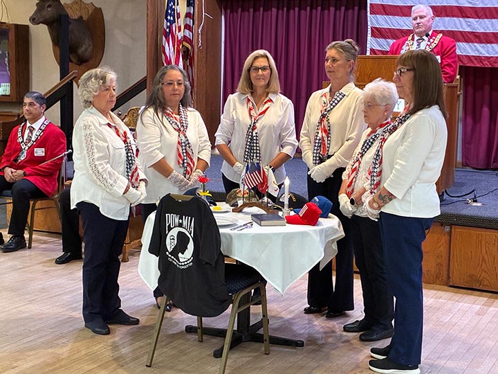 GARDEN GROVE...Ladies of the Garden Grove Emblem Club perform the Missing Man Ceremony at the POW table during The Elks Thursday night meeting in honor of Veterans Day.