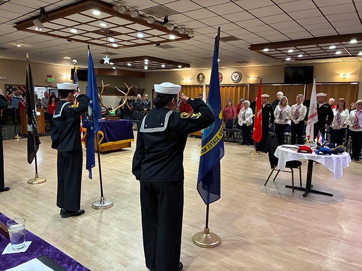The Color Guard from Naval Sea Cadets - Seal Beach Battalion followed the Missing Man Ceremony with the flags of our armed forces.